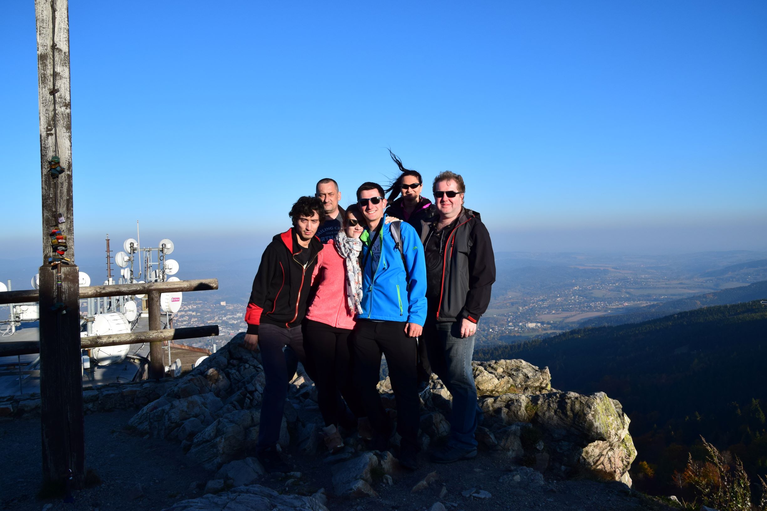 No, když jsme se s tím vozítkem vydrápali na vršek a milému pánovi dali hodně milou sumu za parkování, tak jsme narazili na většinu staré party, stálic srazu - pár Vás chybělo, ale co se dalo dělat ... - Počasí bylo krásné, svítilo sluníčko, vítr měl za cíl nás všechny sfouknout dolů, ale stálo to zato..